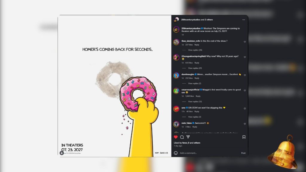 After two decades of waiting, the long-awaited news has finally arrived: The Simpsons Movie is getting a sequel . The legendary animated film, which first premiered in 2007, will return to theaters on July 23, 2027 .