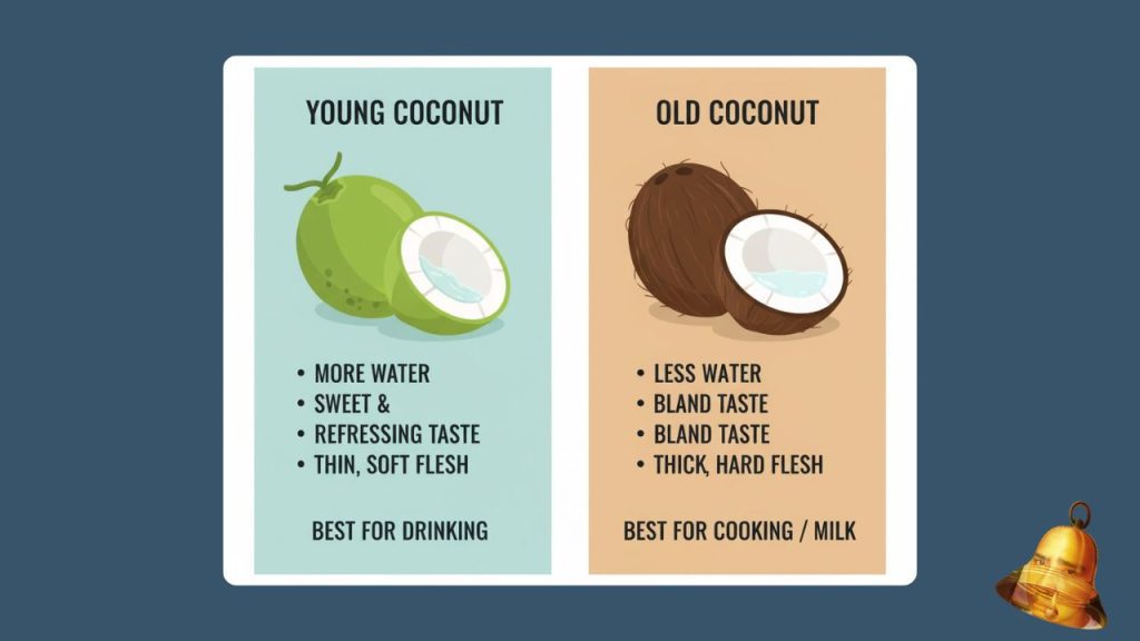 Containing more water, it tastes sweet and refreshing. The flesh is still thin and soft. - Old Coconut